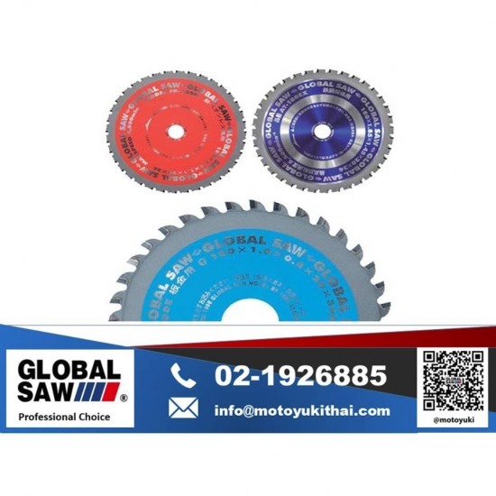 ใบเลื่อยวงเดือนคาร์ไบด์ตัดโลหะ ใบเลื่อยวงเดือนตัดโลหะ ใบเลื่อยวงเดือนตัดเหล็กรูปพรรณโมโตยูกิ เป็นตัวแทนจำหน่าย Global Saw T.C.T. ของประเทศญี่ปุ่นอย่างเป็นทางการแต่เพียงผู้เดียว จำหน่ายใบเลื่อยวงเดือนคาร์ไบด์ตัดโลหะ ใบเลื่อยวงเดือนตัดโลหะ FR-N,S Model ใบเลื่อยวงเดือนสำหรับงานตัดเหล็กรูปพรรณ Dry Tips Saw ฟันเป็น Cermet Tipped เสริมด้วยร่องลดเสียง (Laser Slit) Protection Guard ลดการแตกหักบิ่นของฟันเลื่อย ด้วยการจำกัดระยะเข้าเนื้อชิ้นงานเหล็กของฟันเลื่อย และทำหน้าที่เขี่ยเศษที่ติดในร่องเลื่อยก่อนฟันต่อไปเข้าตัดชิ้นงาน Designed for Thin Saw Blade & Kerf ออกแบบให้ร่องเลื่อยเล็กและแคบ ลดแรงต้าน ตัดได้รวดเร็วขึ้น อายุการทำงานของคมฟันนานขึ้น FR-N มีขนาดเส้นผ่าศูนย์กลางตั้งแต่ 100-185 มม. FR-S มีขนาดเส้นผ่าศูนย์กลางตั้งแต่ 305-355 มม. รูปแบบฟันเป็นแบบ CB-n TYPE AT-180W Model ใบเลื่อยวงเดือนสำหรับงานตัดเหล็กเพลาขนาด 22 มิล Dry Tips Saw ฟันเป็น Cermet Tipped มีขนาดเส้นผ่าศูนย์กลาง 180 มม. รูปแบบฟันเป็นแบบ D TYPE AT-180EX Model ใบเลื่อยวงเดือนสำหรับงานตัดเหล็กหนา 15 มิล Dry Tips Saw ฟันเป็น Cermet Tipped มีขนาดเส้นผ่าศูนย์กลาง 180 มม. รูปแบบฟันเป็นแบบ D TYPE BK Model ใบเลื่อยวงเดือนสำหรับงานตัดเหล็กกัลวาไนซ์ (Galvanized), เหล็กบาง ลดการดีดสะบัดของชิ้นงานที่บาง ทำให้รอยตัดเรียบตรงไม่เป็นคลื่น มีขนาดเส้นผ่าศูนย์กลางตั้งแต่ 80-180 มม. รูปแบบฟันเป็นแบบ CB-n TYPE ST Model ใบเลื่อยวงเดือนสำหรับงานตัดสแตนเลส Dry Tips Saw ฟันเป็น Cermet Tipped เสริมคุณสมบัติพิเศษสำหรับมืออาชีพด้วยการเคลือบฟลูออไรด์ (Fluorine Coating) ลดแรงเสียดสีระหว่างการตัด ลดความร้อนที่เกิดขึ้น ตัวใบมีความหนา 2 ขนาดทำให้ร่องเลื่อยแคบ ไม่ส่ายขณะตัด จำนวนฟันที่มากขึ้นพิเศษและยังมี Protection Guard, ร่องลดเสียง (Laser Slit) มีขนาดเส้นผ่าศูนย์กลางตั้งแต่ 125-355 มม. รูปแบบฟันเป็นแบบ CB-n TYPE GA Model ใบเลื่อยวงเดือนสำหรับงานตัดอลูมิเนียม ตัวใบเลื่อยทำจากเหล็กกล้าชุบแข็ง (SK5) ผ่านขั้นตอนการผลิตปรับความราบเรียบของตัวใบ เพื่อลดการแกว่งส่าย ให้รอยตัดที่เที่ยงตรง ฟันเลื่อยเป็นคาร์ไบด์เกรนละเอียดพิเศษ ลับคมด้วยเครื่องจักรอัตโนมัติมีความเที่ยงตรงสูง มีขนาดเส้นผ่าศูนย์กลางตั้งแต่ 100-455 มม. รูปแบบฟันเป็นแบบ BC-TYPE เหมาะสำหรับ Aluminium SASH GB Model ใบเลื่อยวงเดือนสำหรับงานตัดอลูมิเนียมและโลหะที่ไม่ใช่เหล็กหรือวัสดุโลหะที่ไม่มีเหล็กผสม (Non Ferrous) ตัวใบเลื่อยทำจากเหล็กกล้าชุบแข็ง (SK5) ผ่านขั้นตอนการผลิตปรับความราบเรียบของตัวใบ เพื่อลดการแกว่งส่าย ให้รอยตัดที่เที่ยงตรง ฟันเลื่อยเป็นคาร์ไบด์เกรนละเอียดพิเศษ ลับคมด้วยเครื่องจักรอัตโนมัติมีความเที่ยงตรงสูง มีขนาดเส้นผ่าศูนย์กลางตั้งแต่ 205-455 มม. รูปแบบฟ