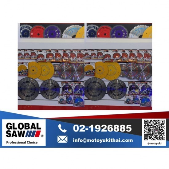 ใบเลื่อยวงเดือนคาร์ไบด์ โมโตยูกิ เป็นตัวแทนจำหน่าย Global Saw T.C.T. ของประเทศญี่ปุ่นอย่างเป็นทางการแต่เพียงผู้เดียว ใบเลื่อยวงเดือนคาร์ไบด์ Dry Tips Saw Blade FR-N,S Model ใบเลื่อยวงเดือนสำหรับงานตัดเหล็กรูปพรรณ Dry Tips Saw ฟันเป็น Cermet Tipped เสริมด้วยร่องลดเสียง (Laser Slit) Protection Guard ลดการแตกหักบิ่นของฟันเลื่อย ด้วยการจำกัดระยะเข้าเนื้อชิ้นงานเหล็กของฟันเลื่อย และทำหน้าที่เขี่ยเศษที่ติดในร่องเลื่อยก่อนฟันต่อไปเข้าตัดชิ้นงาน Designed for Thin Saw Blade & Kerf ออกแบบให้ร่องเลื่อยเล็กและแคบ ลดแรงต้าน ตัดได้รวดเร็วขึ้น อายุการทำงานของคมฟันนานขึ้น FR-N มีขนาดเส้นผ่าศูนย์กลางตั้งแต่ 100-185 มม. FR-S มีขนาดเส้นผ่าศูนย์กลางตั้งแต่ 305-355 มม. รูปแบบฟันเป็นแบบ CB-n TYPE AT-180W Model ใบเลื่อยวงเดือนสำหรับงานตัดเหล็กเพลาขนาด 22 มิล Dry Tips Saw ฟันเป็น Cermet Tipped มีขนาดเส้นผ่าศูนย์กลาง 180 มม. รูปแบบฟันเป็นแบบ D TYPE AT-180EX Model ใบเลื่อยวงเดือนสำหรับงานตัดเหล็กหนา 15 มิล Dry Tips Saw ฟันเป็น Cermet Tipped มีขนาดเส้นผ่าศูนย์กลาง 180 มม. รูปแบบฟันเป็นแบบ D TYPE BK Model ใบเลื่อยวงเดือนสำหรับงานตัดเหล็กกัลวาไนซ์ (Galvanized), เหล็กบาง ลดการดีดสะบัดของชิ้นงานที่บาง ทำให้รอยตัดเรียบตรงไม่เป็นคลื่น มีขนาดเส้นผ่าศูนย์กลางตั้งแต่ 80-180 มม. รูปแบบฟันเป็นแบบ CB-n TYPE ST Model ใบเลื่อยวงเดือนสำหรับงานตัดสแตนเลส Dry Tips Saw ฟันเป็น Cermet Tipped เสริมคุณสมบัติพิเศษสำหรับมืออาชีพด้วยการเคลือบฟลูออไรด์ (Fluorine Coating) ลดแรงเสียดสีระหว่างการตัด ลดความร้อนที่เกิดขึ้น ตัวใบมีความหนา 2 ขนาดทำให้ร่องเลื่อยแคบ ไม่ส่ายขณะตัด จำนวนฟันที่มากขึ้นพิเศษและยังมี Protection Guard, ร่องลดเสียง (Laser Slit) มีขนาดเส้นผ่าศูนย์กลางตั้งแต่ 125-355 มม. รูปแบบฟันเป็นแบบ CB-n TYPE GA Model ใบเลื่อยวงเดือนสำหรับงานตัดอลูมิเนียม ตัวใบเลื่อยทำจากเหล็กกล้าชุบแข็ง (SK5) ผ่านขั้นตอนการผลิตปรับความราบเรียบของตัวใบ เพื่อลดการแกว่งส่าย ให้รอยตัดที่เที่ยงตรง ฟันเลื่อยเป็นคาร์ไบด์เกรนละเอียดพิเศษ ลับคมด้วยเครื่องจักรอัตโนมัติมีความเที่ยงตรงสูง มีขนาดเส้นผ่าศูนย์กลางตั้งแต่ 100-455 มม. รูปแบบฟันเป็นแบบ BC-TYPE เหมาะสำหรับ Aluminium SASH GB Model ใบเลื่อยวงเดือนสำหรับงานตัดอลูมิเนียมและโลหะที่ไม่ใช่เหล็กหรือวัสดุโลหะที่ไม่มีเหล็กผสม (Non Ferrous) ตัวใบเลื่อยทำจากเหล็กกล้าชุบแข็ง (SK5) ผ่านขั้นตอนการผลิตปรับความราบเรียบของตัวใบ เพื่อลดการแกว่งส่าย ให้รอยตัดที่เที่ยงตรง ฟันเลื่อยเป็นคาร์ไบด์เกรนละเอียดพิเศษ ลับคมด้วยเครื่องจักรอัตโนมัติมีความเที่ยงตรงสูง มีขนาดเส้นผ่าศูนย์กลางตั้งแต่ 205-455 มม. รูปแบบฟันเป็นแบบ D-TYPE เหมาะสำหรับอลูมิเนียมหล่อหนาและโลหะที่ไม่มีส่วนผสมของเหล็ก (ทองเหลือง, ทองแดง, เงิ